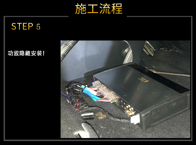 雷貝琴A75功放隱藏安裝,線材排列整齊,并且使用熱縮管進行標記保護!