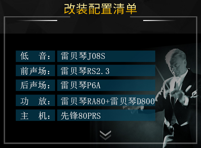 ?前聲場喇叭安裝雷貝琴RS2.3,中低音安裝于原車喇叭位!解析力極高、控制力極強的頂級功放水準,音色溫暖潤人,屬于很耐聽的類型!鎂鋁合金的振膜,保證喇叭剛性!