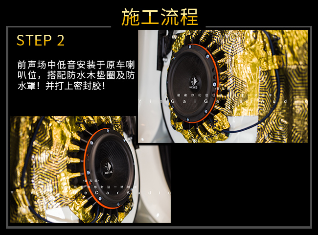 后聲場(chǎng)喇叭安裝伊蔓喇叭,用作聲場(chǎng)補(bǔ)充,保證聲場(chǎng)完整性!