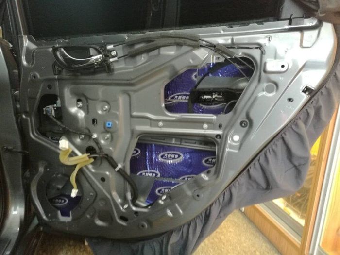 車門是風(fēng)噪、路噪、胎噪和發(fā)動(dòng)機(jī)噪聲向駕駛室內(nèi)傳遞的通道之一。我們使用大能藍(lán)金剛對(duì)車門里外兩層鈑金進(jìn)行雙層減振、密封和隔音處理,不僅可以強(qiáng)化鈑金,減少車門的振動(dòng)及共振噪音,同時(shí)還能密封車門上的孔洞和空隙,提升車門的隔音效果。