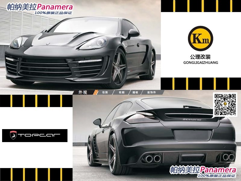 上海KM改裝俱樂部擁有歐洲MANSORY、HAMANN、LUMMA、KAHN等三十多個專門針對保時捷、路虎、奔馳、寶馬、奧迪、進(jìn)口大眾六大汽車品牌的改裝產(chǎn)品,并擁有專業(yè)的設(shè)計團(tuán)隊為高端車主提供個性化定制服務(wù)。KM將成為全國范圍內(nèi)產(chǎn)品最廣、單位面積最大、設(shè)施最齊全、檔次最高的國際超級豪車改裝旗艦店。此產(chǎn)品:Porsche保時捷帕納美拉全進(jìn)口原裝包圍Topcar品牌。