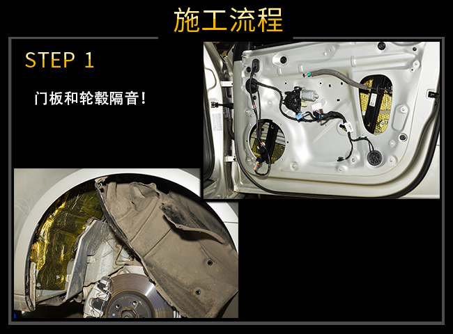 門板進(jìn)行隔音處理,前門板進(jìn)行內(nèi)層層隔音,增強(qiáng)鈑金剛性,有效抑制共振!輪轂隔音,降低胎噪,讓你有一個(gè)更好的聽音環(huán)境!