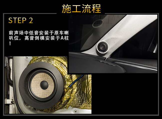 前聲場(chǎng)喇叭安裝勁浪PS165F,中低音安裝于原車?yán)任?,音色明亮,?duì)細(xì)節(jié)的刻畫十分細(xì)膩,對(duì)人聲的詮釋也是十分圓潤(rùn)!高音單元倒模安裝于A柱!