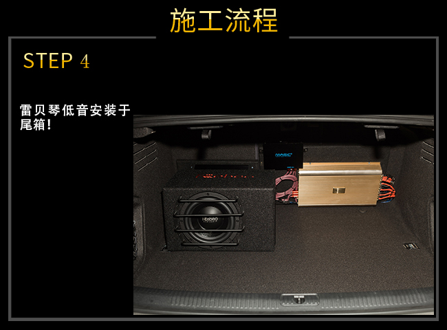 雷貝琴低音安裝于尾箱,方便靈活!同時(shí)不占用太多車內(nèi)空間!