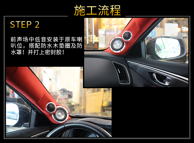 中音和高音單元倒模安裝于A柱,使得聲場(chǎng)的層次更加分明!