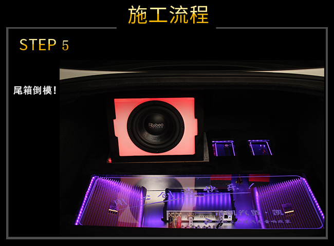 加裝的雷貝琴功放與低音倒模安裝于尾箱,擺放整齊,并且加以炫彩燈光進(jìn)行裝飾,低調(diào)奢華,盡顯大氣之美!