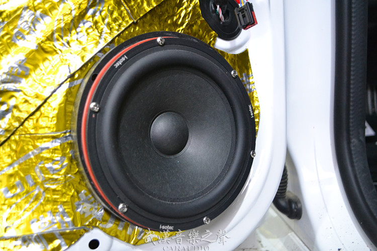 后聲場德國艾索特RE165.3兩分頻喇叭原車位無損安裝,同時(shí)門板雙層佳靜隔音王做減震處理。