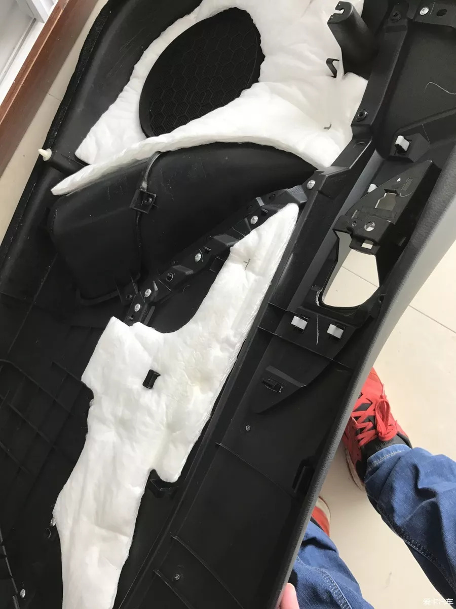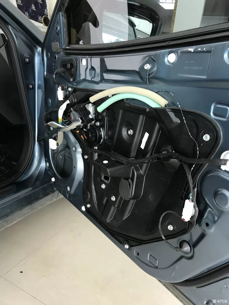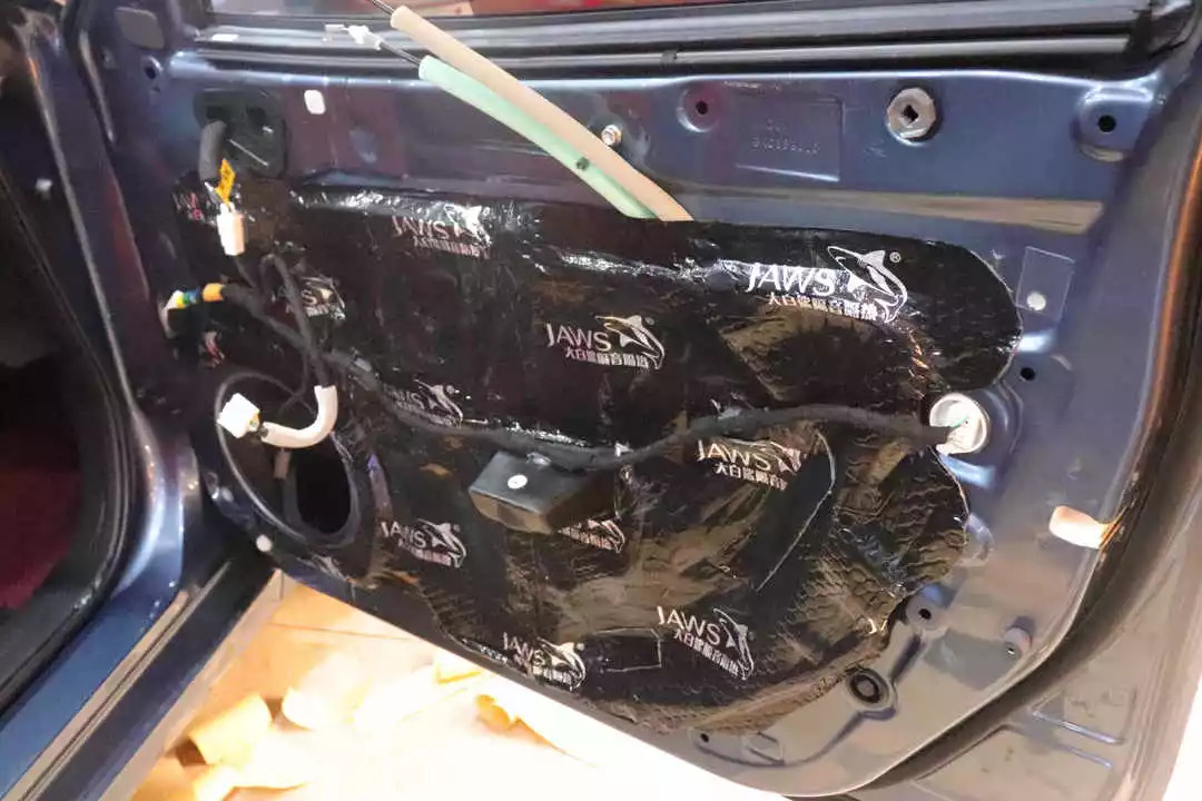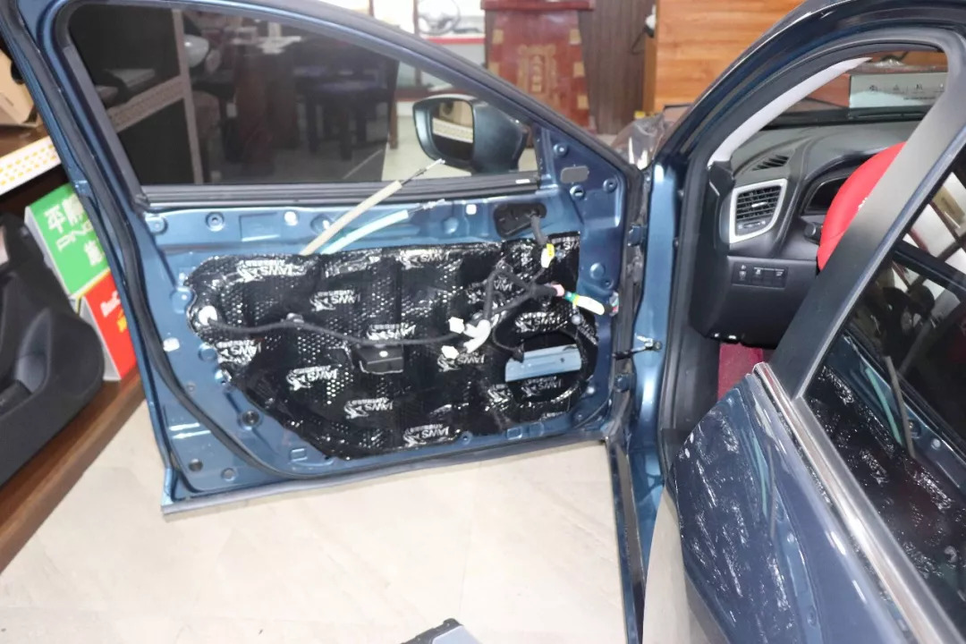 本次汽車音響升級的第一步是門板隔音。原車門板拆卸后,上面只有一層層薄薄的隔音棉,無法很好的隔音、止震、抗熱。