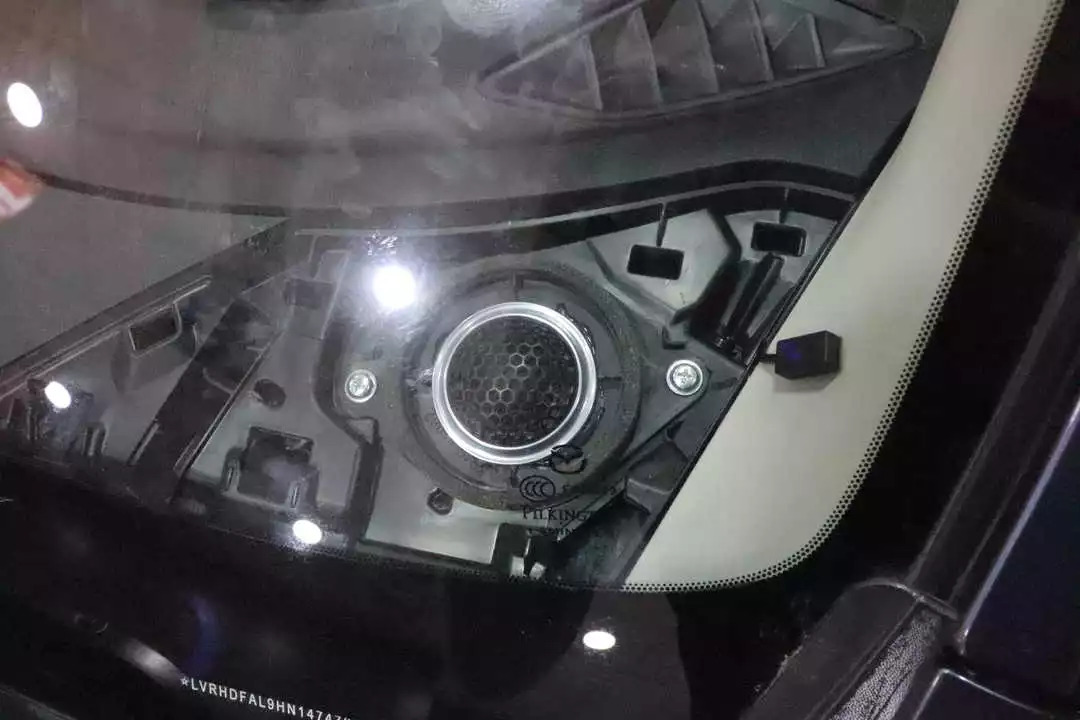 原車簡配喇叭沒有高音,有預(yù)留位置,改裝技師原車位安裝高音。