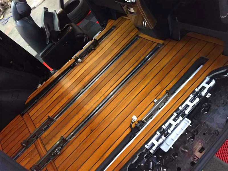 安裝時每一塊木板都需要很精細地對位施工,確保嚴絲合縫,否則會出現(xiàn)不平整或在行駛過程中的顛簸導致發(fā)出異響,影響板內(nèi)舒適性。