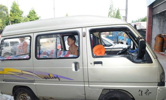 微面在中國(guó)一直扮演著創(chuàng)業(yè)好幫手的角色,很多車(chē)主為了多拉貨將后兩排座椅拆除。今日,溫州瞿溪的一位微面車(chē)主也將后排座椅拆除,為的可不是多拉快跑,而是鋪上塑料布,灌滿(mǎn)水,放上游泳圈,成了一個(gè)流動(dòng)私家泳池。