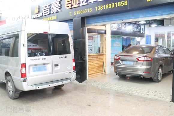 上海音豪汽車音響店內(nèi),還有一臺福特蒙迪歐汽車在進行音響和隔音升級。