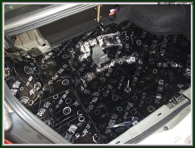 后備箱底部滿鋪了一層阻尼隔聲止振墊