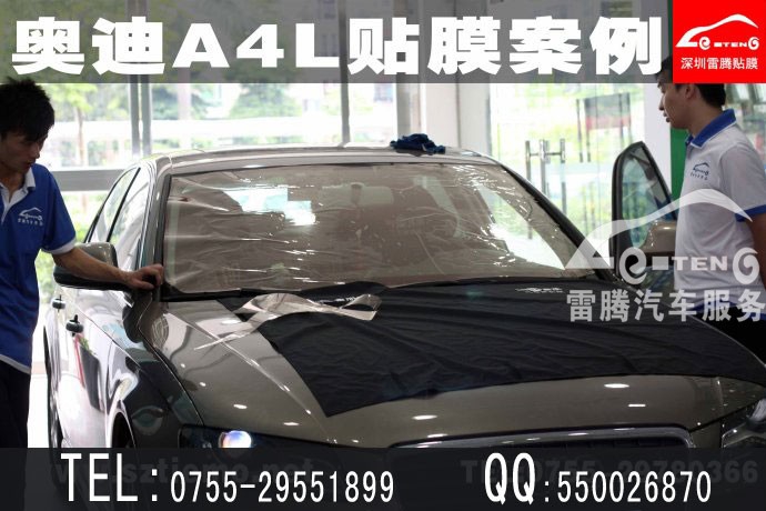 汽車貼膜的作用 1、隔熱防曬。貼膜能很好的解決紅外線產(chǎn)生的大量熱量?! ?、隔紫外線。紫外線中的中波、長(zhǎng)波能穿透很厚的玻璃,貼上隔熱膜能隔斷99%的紫外線。防止皮膚受傷害,也能減輕汽車內(nèi)飾老化。如3M的晶銳70前擋膜能隔斷99.9%紫外線,相當(dāng)于防曬霜SPF40的56倍,因此成為美國防皮膚癌協(xié)會(huì)推薦產(chǎn)品。 3、安全與防爆。膜的基層為聚酯膜,有非常耐撕拉防擊穿的功能,加上膜的膠層,貼膜后玻璃強(qiáng)度能增加100倍。防止玻璃意外破碎對(duì)司乘人員造成成二次傷害?! ?、營(yíng)造私密空間。貼膜后,車外看不清車內(nèi),保留隱私和安全?! ?、降低空調(diào)省耗??照{(diào)省耗降低近15%。貼上隔熱膜空調(diào)制冷能力損失可以得到彌補(bǔ),能瞬間減低車內(nèi)溫度,到達(dá)一定程度的節(jié)省油耗。 6、增加美觀。根據(jù)個(gè)人喜好,通過貼膜能個(gè)性化美觀愛車。 7、防眩光。保持眼睛舒適。降低因?yàn)檠9庖蛩卦斐傻囊馔馇闆r。深圳汽車專業(yè)貼膜建議沒有給愛車貼過膜的車主一定要貼,這是對(duì)您的安全和健康在買單。貼膜的時(shí)候一定要選擇高性能的汽車隔熱膜防爆膜!深圳汽車貼膜專業(yè)店地址:深圳市寶安區(qū)西鄉(xiāng)大道與寶源路交匯處駿通大酒店首層 聯(lián)系電話:0755-29551899 QQ:814502299深圳專業(yè)汽車貼膜店貼膜案例展示1.奧迪A4L全車貼膜后前檔效果展示2.寶馬520li全車貼膜案例