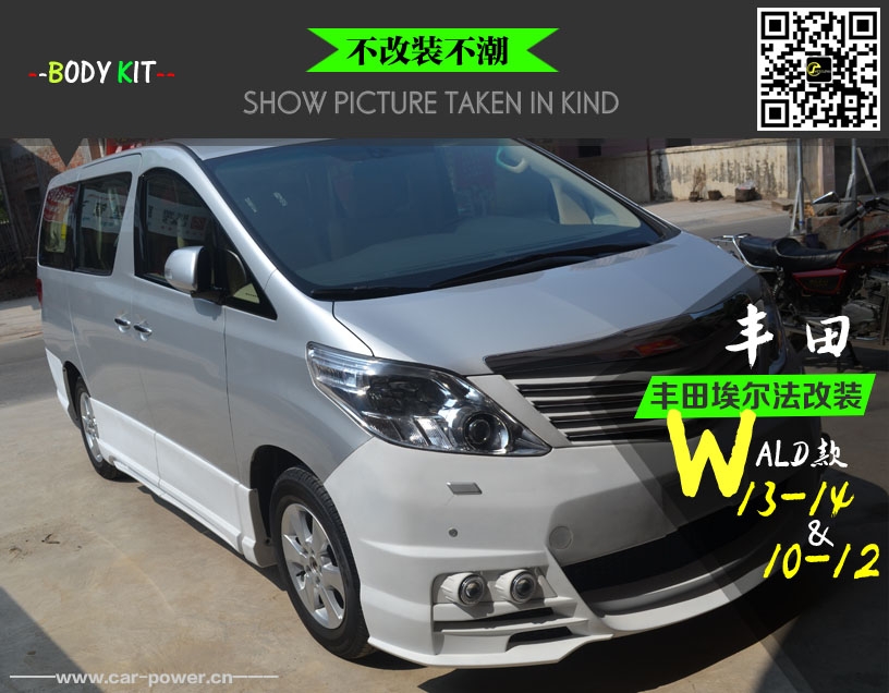產(chǎn)品名稱:豐田埃爾法WALD款大包圍 產(chǎn)品材質(zhì):樹脂纖維材質(zhì),俗稱玻璃鋼 產(chǎn)品包含:前杠,中網(wǎng),霧燈,中網(wǎng),門板,后杠,反光條,尾嘴。 產(chǎn)品色漆:底漆處理,需購買回去后自行噴漆。
