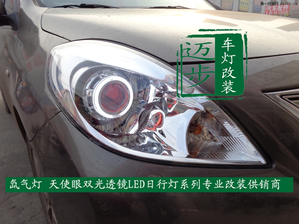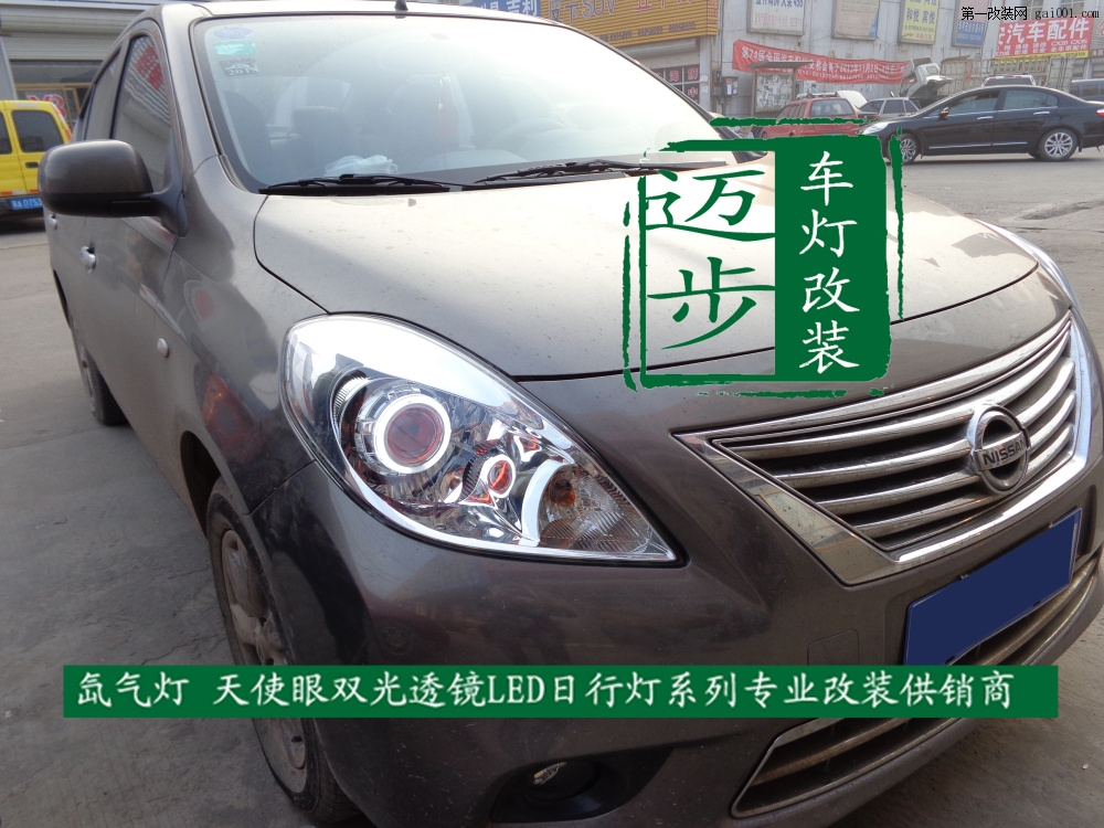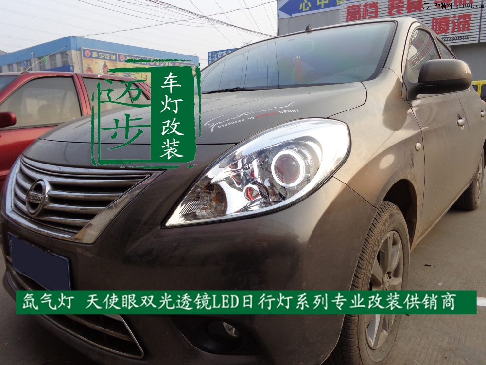 日產(chǎn)陽光大燈改裝海拉三博世小糸Q5雙光透鏡天使眼氙氣燈