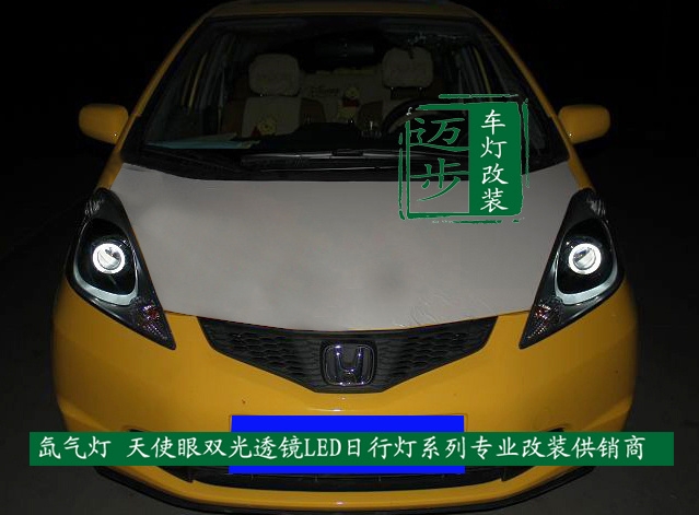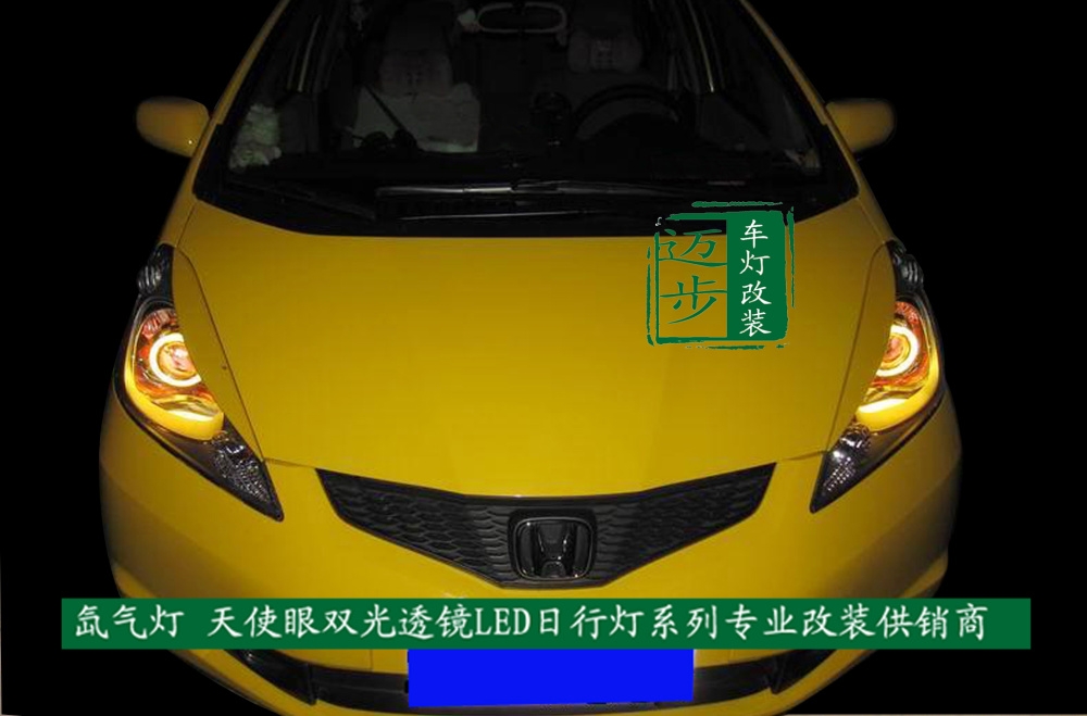 09飛度大燈改裝海拉三博世小糸產(chǎn)Q5雙光透鏡天使眼氙氣燈改