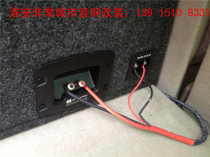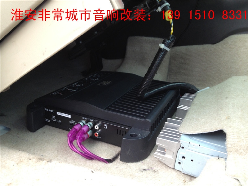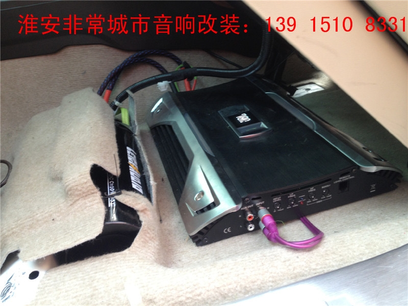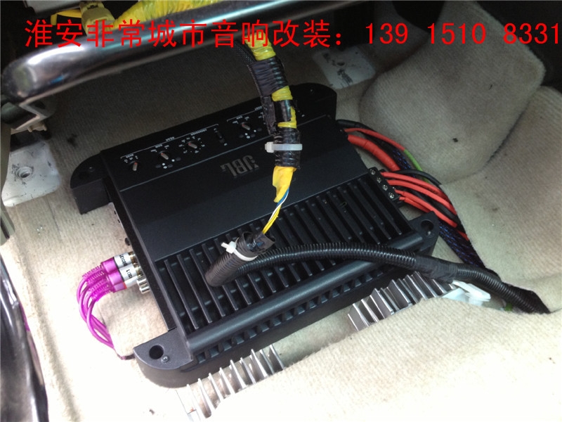 推動(dòng)低音單元的JBL單聲道功放安裝駕駛位座位下,700瓦的額定功率推動(dòng)JBL十二寸低音炮非常合適