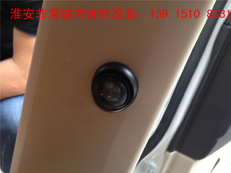 后聲場(chǎng)高音單元安裝,按照車主要求安裝在B柱上面