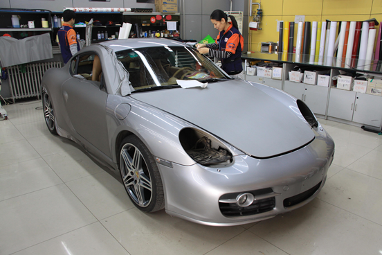 保時(shí)捷卡曼全車?yán)z鈦車身改色案例