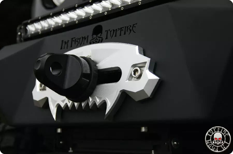預(yù)留內(nèi)嵌式絞盤安裝位,WARN10000磅絞盤坐落其中,在野外特殊條件下能夠為車輛帶來穩(wěn)固的救援與后勤保障。搭配TOPFIRE虎魄軟纜導(dǎo)繩器,采用整料精銑,經(jīng)久耐用不易變形,視覺效果犀利,為戰(zhàn)馬增添幾分個性。