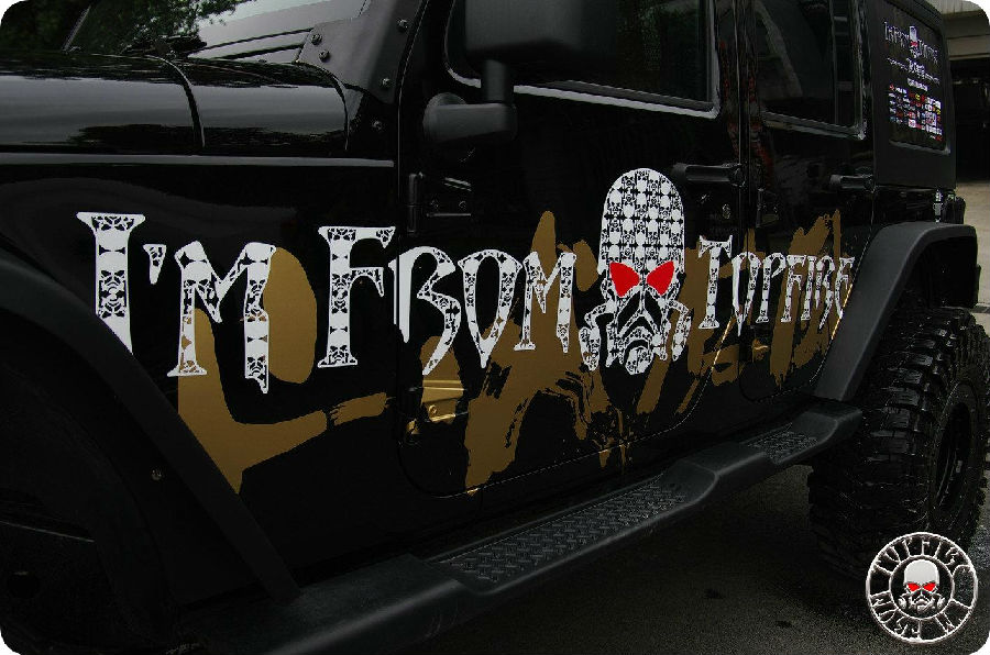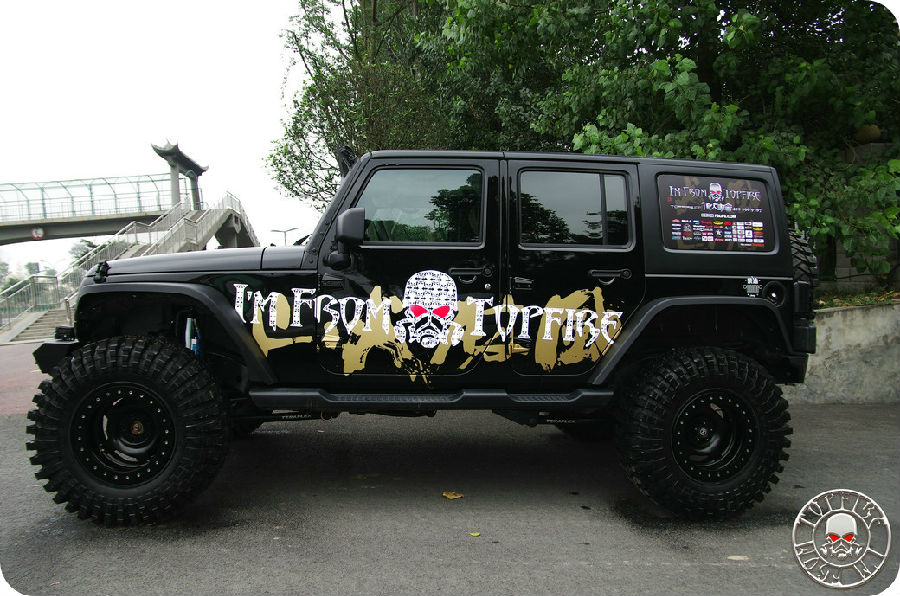 整個車身側(cè)面線條流暢卻稍顯單調(diào),頂火特制TOPFIRE風(fēng)林火山系列車身貼極具美觀與立體感。一改黑色車身的單一性,使車輛更具個性。