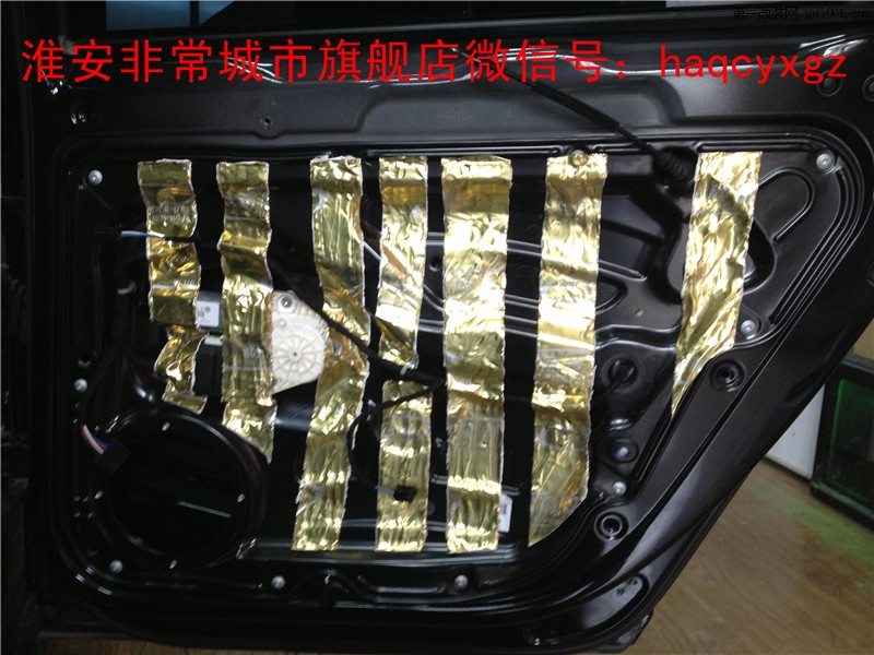 前門(mén)板隔音,加強(qiáng)版隔音,里外各一層止震板,條狀粘貼,可以防止低頻的二次共振,在大動(dòng)態(tài)時(shí)有效的抑制門(mén)板的震動(dòng)