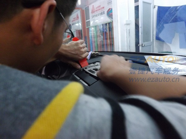 首先拆下空調(diào)出風(fēng)口,然后拆下原車屏上面框罩、再拆下屏幕等