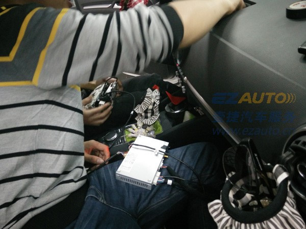 再將導(dǎo)航模塊、手機(jī)互聯(lián)模塊安裝好,并加裝好倒車攝像頭。