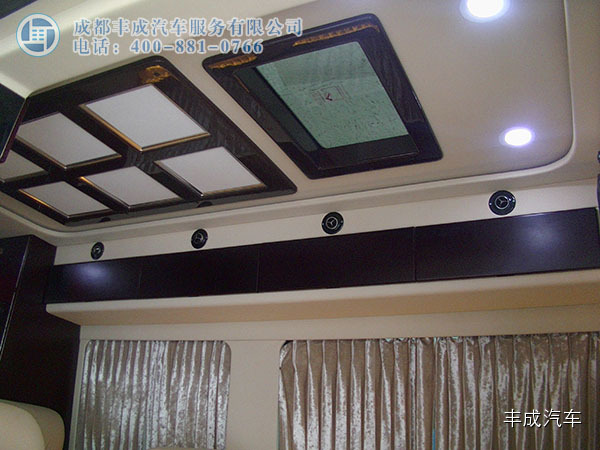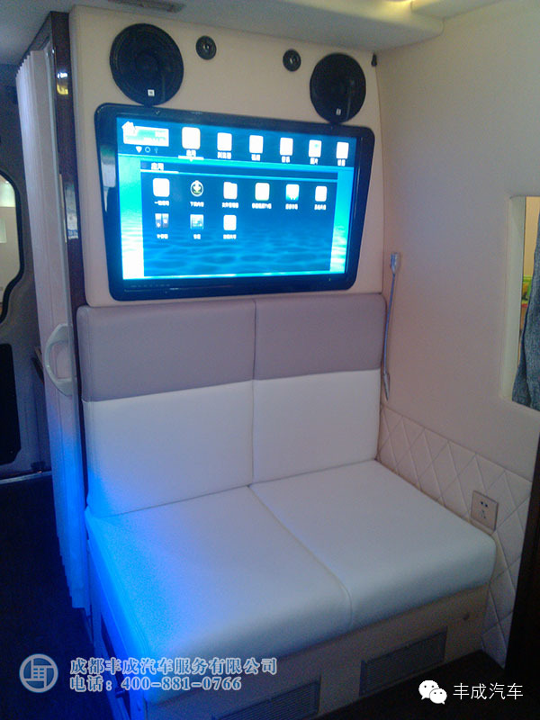 這款車的設(shè)計采用的是全隔斷配上可升降電視、吧臺、儲物抽屜、安尼卡系統(tǒng),讓辦公娛樂更貼心!