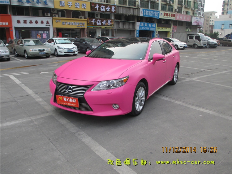 雷克薩斯ES300h改色貼膜,原車白色改亞光玫紅,既保護(hù)車漆,有可以隨性所欲的改變車身顏色,改色貼膜就是這么任性!想換就換,隨貼隨揭,不傷原車漆!深圳車衣裳膜幻色彩專業(yè)汽車改色貼膜,您身邊的汽車改色專家!http://url.cn/HAL1Bo