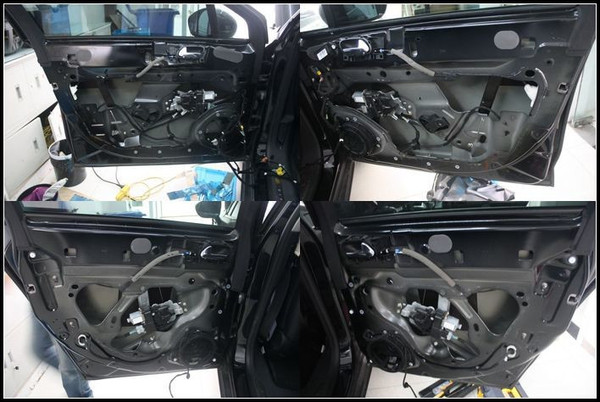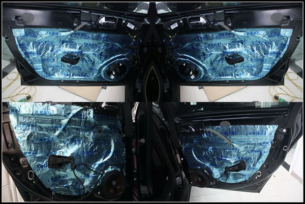 四門雙層隔音是門板部位隔音的標準做法,完成后,可以增強門板的厚實度,關門的聲音會更加的沉悶;還能夠抑制高速行駛時風噪和路躁的傳入,提升了車門的密封性,從另一方面保障一套音響的良好發(fā)揮;此外內外形成的箱體空間也是對音響發(fā)揮起很重要的作用。