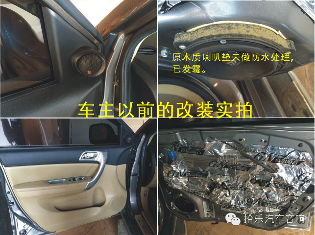 車主以前改裝用的木質(zhì)噴漆喇叭墊,由于未做防水處理已經(jīng)發(fā)霉,而此次我們采用的是塑膠材質(zhì)的喇叭墊和防水罩,因此無需擔心潮濕問題。