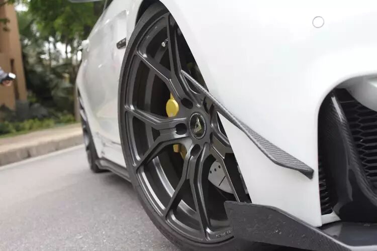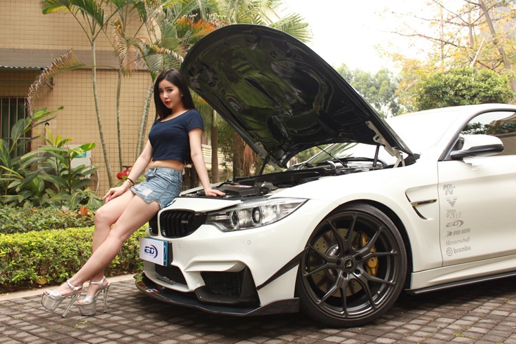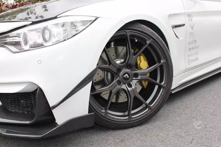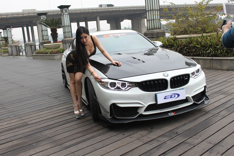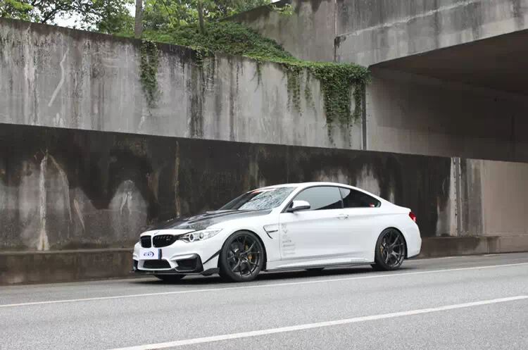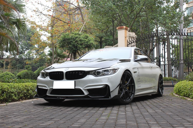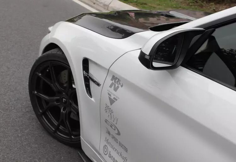 此套包圍選用的是美國(guó)ED品牌的BMW 2014-2015-4 Series F32/F33/F36-style. M4-S款套件,和市面上臺(tái)灣件不同的是前臉位置,市面上的M4款式均為前杠+前唇一體式,美國(guó)ED件按照M4的1:1設(shè)計(jì)將前杠和下唇分離。除前杠、后杠和側(cè)裙采用質(zhì)量更佳的PU材質(zhì),M4葉子板為Kevlar纖維外,其他部件(前唇、前杠擾流、發(fā)動(dòng)機(jī)蓋、側(cè)裙擾流、后杠排氣護(hù)板、后包角、后擾流、尾翼、尾箱蓋)均為碳纖維材料,整體質(zhì)感、形態(tài)更加運(yùn)動(dòng),霸氣程度超越原廠寶馬M4跑車, 讓這部雙門跑車更具侵略性。