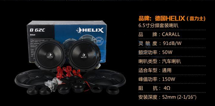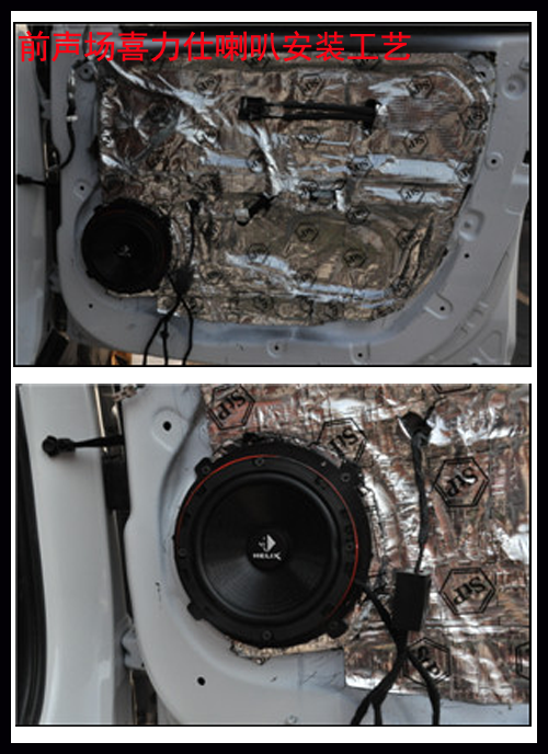 前聲場[url=]喜力仕[/url]B62C套裝喇叭,分別是兩個中低音,兩個高音,高音裝到門板里面,中低音裝到原車喇叭位置。
