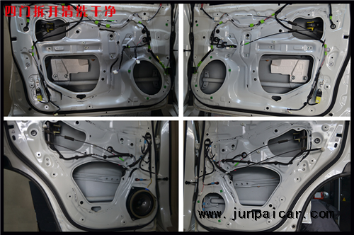 升級喇叭首先要做的就是隔音,因為隔音也是一項提升響音效果的工程,首先我們看門板隔音、拆開車門可以看到原車只有一層塑料膜,撕掉塑料膜,鋼板杠杠的,噪音如何能不大?武漢汽車音響改裝