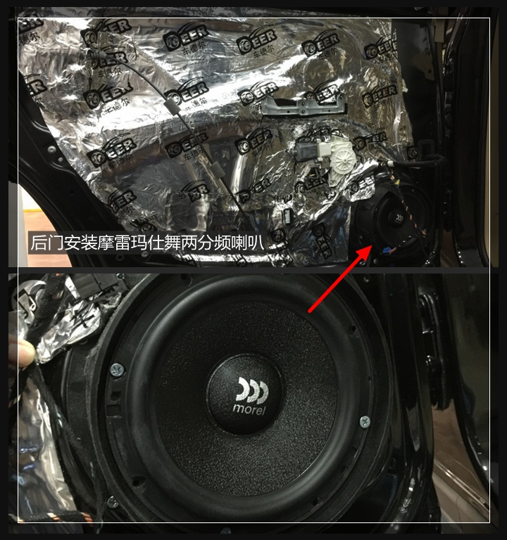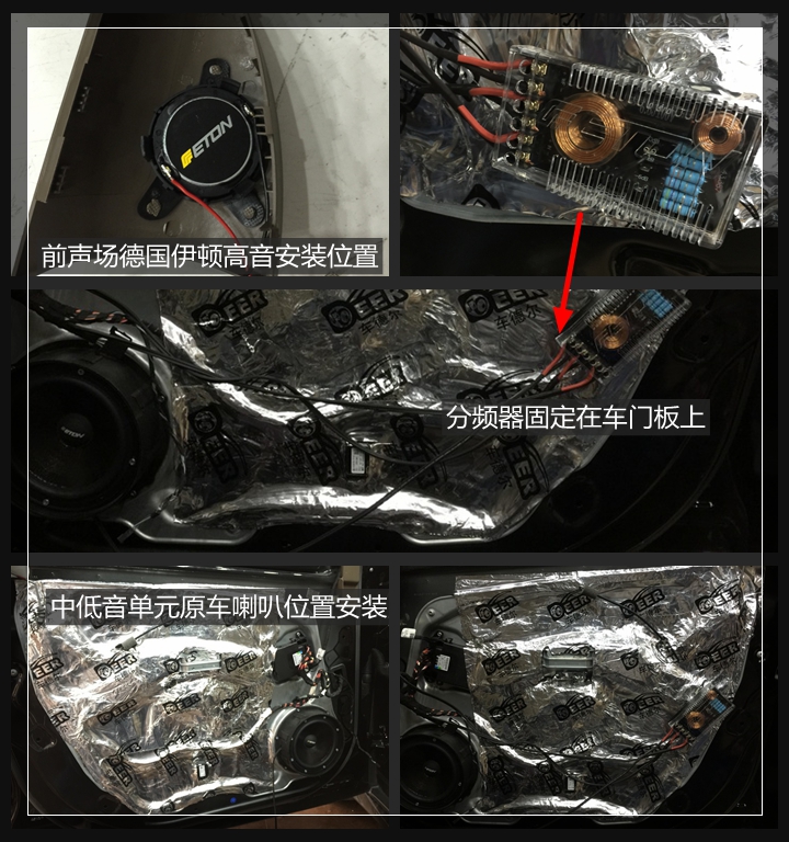 改裝亮點(diǎn):無(wú)損換裝,原車主機(jī)直接驅(qū)動(dòng)前后門兩套靚聲喇叭;