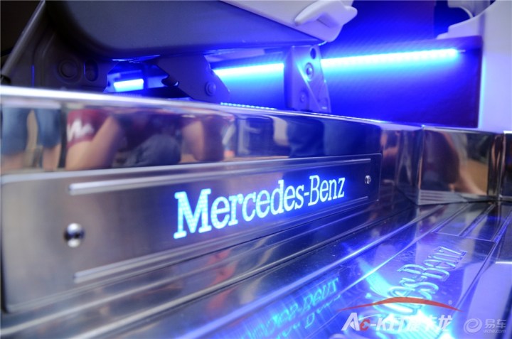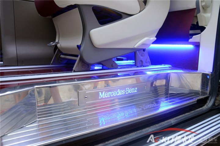 全包迎賓踏板,Mercedes-Benz的標(biāo)志閃爍藍(lán)光,盡顯尊貴風(fēng)范(下圖)