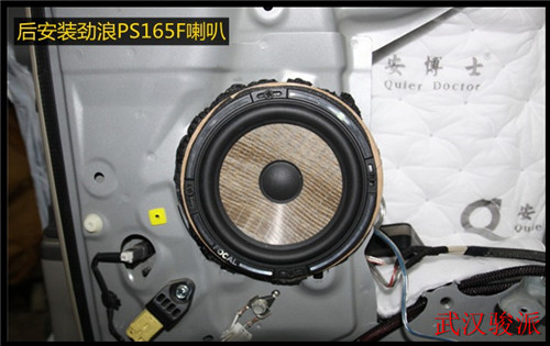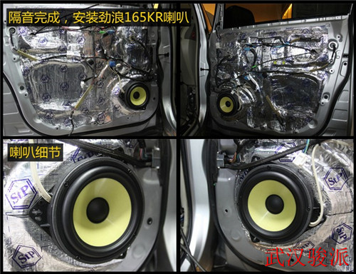 隔音完成后安裝勁浪165KR兩分頻喇叭。www.junpaicar.com 武漢汽車音響