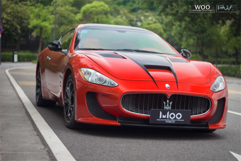 瑪莎拉蒂改色貼膜高光金屬紅,佛山WOO汽車貼膜,專業(yè)車身改色、汽車改色貼膜,透明保護(hù)膜,漆面保護(hù)膜(隱形車衣)專家