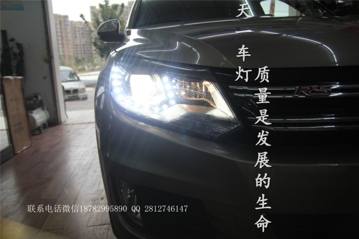 成都13-15新途觀改車燈改裝期間LED日行燈淚眼海拉透鏡35W氙氣大燈 車型:新款2013-2015途觀中低配(原車一體式25W氙氣燈)本次改裝方案:德國原裝海拉5雙光透鏡+全新歐司朗4300K氙氣燈+全新歐司朗35W安定器!附加項 ...