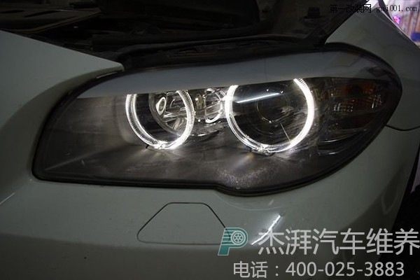 南京汽車車燈改裝哪里好? 南京杰湃汽車美容維養(yǎng),寶馬2014款520Li典雅型車燈改裝。不報故障,不改原車線路,完美實現(xiàn)原裝日行燈效果!新改寶馬520改裝車燈氙氣燈雙光透鏡大燈總成低配升級高配,效果還不錯哦?。ǜ?...