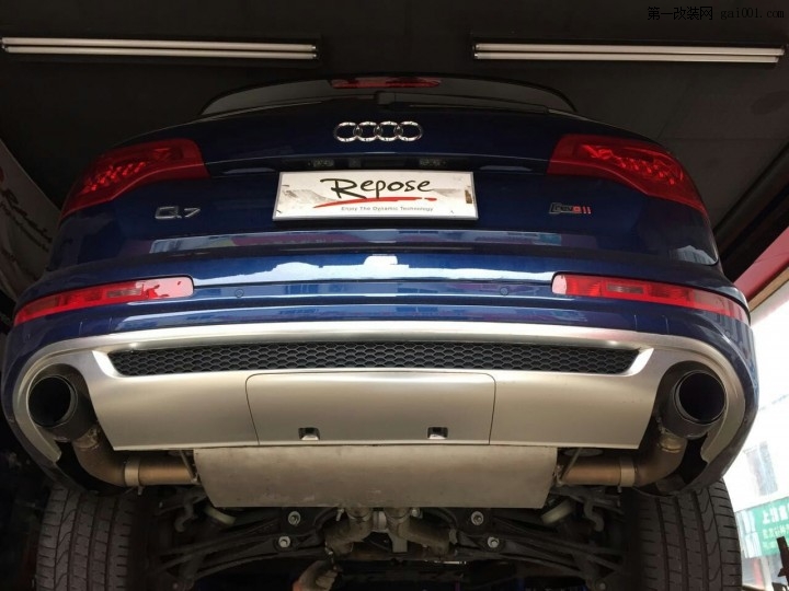 奧迪Q7 3.0T Repose閥門排氣 車友之前換的是其他品牌的排氣,效果覺得不太滿意,換裝Repose閥門排氣,試跑的時候,在車外聽到急加速的聲浪,車主不由的豎起大 ...