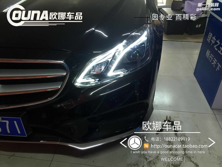 天津奔馳E200改裝高配大燈總成,不改動(dòng)原車線路,不影響質(zhì)保。