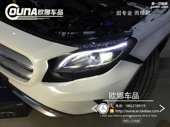 天津奔馳GLA200改裝高配大燈總成,不改動原車線路,不影響質保。