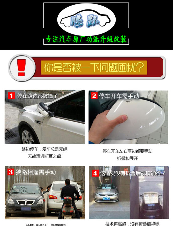 中國強國人福福特銳界也可實現(xiàn)后視鏡自動折疊啦!福特銳界后視鏡居然不能自動折疊,車大過狹窄道路時后視鏡需要手動去掰,停車入庫時也不方便,現(xiàn)在改裝了后視鏡自動折疊功能,太方便了,車里觸摸開關,可以不用下車 ...