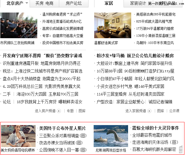 剛上網(wǎng)易看到了個(gè)奇怪的東西,房產(chǎn)家居的下部分,如圖: 誰(shuí)能給解釋解釋嗎?