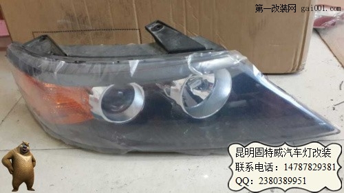 昆明起亞索蘭托大燈車燈改裝,索蘭托一個半小時升級Q5雙光透鏡,輕松快捷,兩近四遠,效果自然爽歪歪。