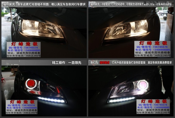 燈光升級后實現(xiàn)兩近光四遠光的燈光組合,徹底解決燈光昏暗問題,配合超亮的光導(dǎo)天使眼+Led紅色惡魔眼,外觀與照明效果一步到位的燈光升級方案,解碼采用福特原廠的電腦編程匹配激活氙氣模式,無需任 ...