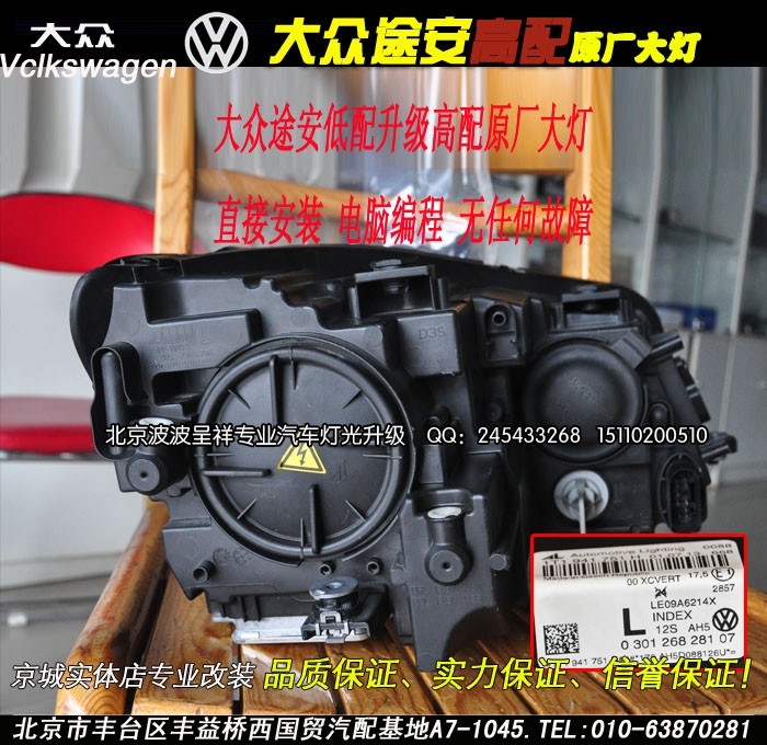 大眾途安升級原廠高配大燈總成 北京波波專業(yè)改燈 無需改線 直接對插 無破壞的原裝位改裝即可擁有高配車氙氣燈的外觀和高亮燈光電話:15110200510QQ:245433268 ...
